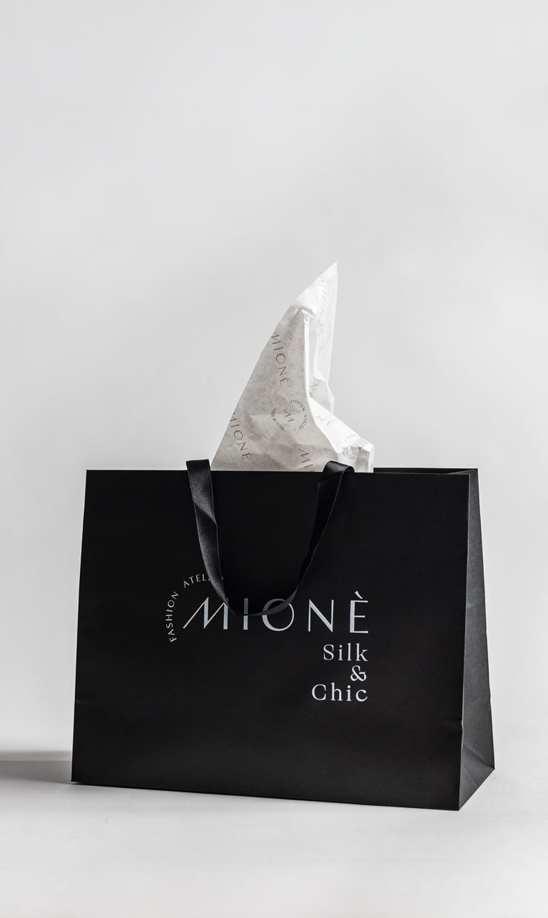 Typographic design of the logo is clear and simple in order to stress the timeless dimension and elegance of Mione creations, while simultaneously functioning as a small decorative accent to the subtle aestheticism of the very creations.